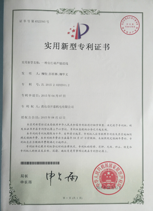 我公司“自行小車輸送系統(tǒng)”獲得國家專利。